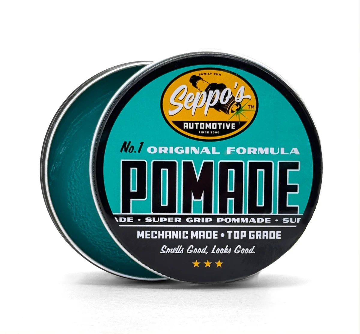 “After 20 years of trying other brands of grease and hair pomades that didn’t work, I wanted to make my own that works the way I want it to work. I don’t want my hair to feel hard like gel, I want the flexibility of a grease but the power of a pomade and I wanted to be able to wash it out. So, I made an extra strong holding pomade that keeps my hair slicked back all day when wrenching.”